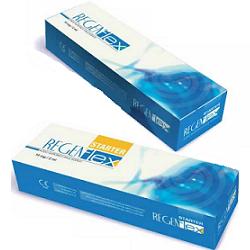 Dispositivo Medico CE, classe III, a base di acido ialuronico altamente purificato, con un peso molecolare compreso tra gli 800 ed i 1.200 kDalton. Lo ialuronato sodico rappresenta un componente fondamentale del liquido sinoviale, essendo responsabile delle sue particolari proprietà viscoelastiche. Lo ialuronato sodico di REGENflex è ottenuto per via fermentativa, escludendo qualsiasi trattamento chimico di modifica, per garantire un prodotto assolutamente puro e privo di residui estranei al contesto fisiologico di impiego. REGENflex STARTER è un prodotto iniettabile basato su una soluzione fisiologica tamponata all’1,6% di acido ialuronico sale sodico con notevoli proprietà viscoelastiche.